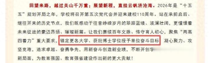 近日,洛阳师范学院发布2026年新年贺词。其中提到,2025年是学校申硕成功后在新的起点上增势赋能再出发之年,2026年学校将锚定更名大学、获批博士学位授予单位奋斗目标,不断开创学校事业高质量发展新局面。此外,学校正扎实推进与洛阳铁路信息工程学校的资源整合优化工作。