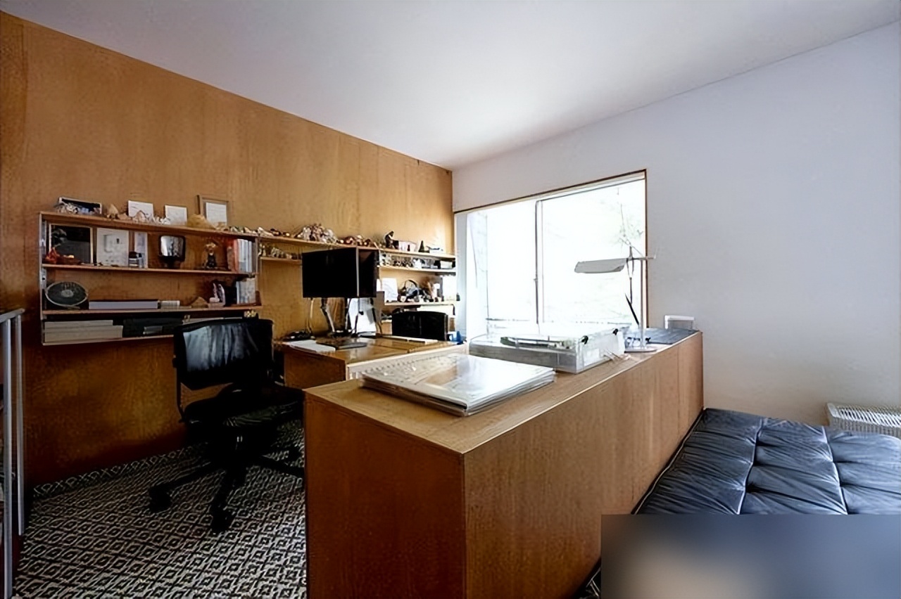 二楼更绝:两张书桌面对面,"加班对视"比微信秒回还快;卧室俩单人床中间留缝,"夜间Wi-Fi信号"互不干扰。
