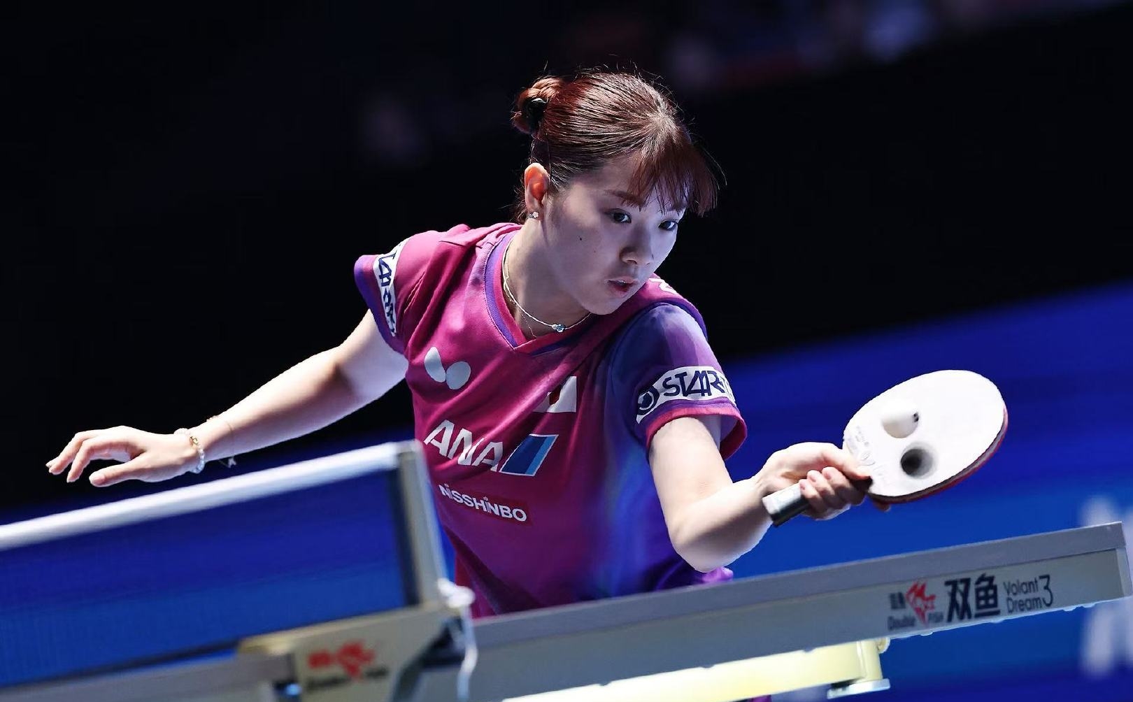 长崎美柚对战赤江夏星,由于是队友的德比之战,彼此之间确实都很熟悉,前四局打成了二比二。长崎美柚在第五局比赛0比4落后,叫了暂停之后,通过落点的变化,将比分追平。赤江夏星正手打中路,长崎美柚反手发球抢攻下网5比7落后。