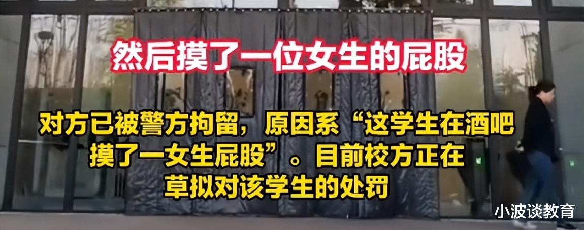 学校的工作人员说:拘留的原因是因为他在酒吧里摸了一位女子的屁股。其实这件事怎么说呢,既然在我们的地盘上犯事,那就按照法律和规定来处理就好。