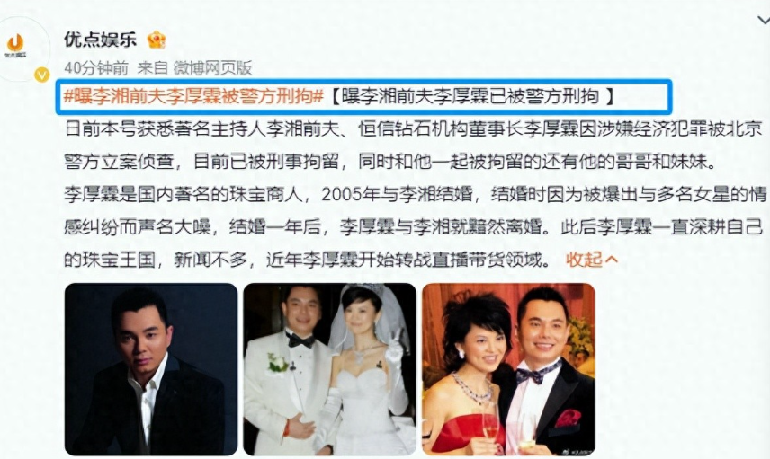 12 月 18 日,专注于娱乐八卦爆料的 “优点娱乐” 突然披露一则重磅消息:曾被誉为 “钻石大王” 的李厚霖,因涉嫌经济犯罪被北京警方依法刑事拘留,令人意外的是,他的哥哥与妹妹也一同被牵连其中,三人同步涉案被拘。