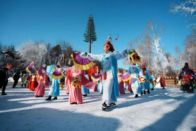 现场,热情奔放的东北大秧歌率先登场,演员们身着鲜艳服饰,手持彩扇,步伐矫健,舞姿婀娜,以极具感染力的表演欢迎着八方来客,瞬间点燃现场热烈氛围,也让屏幕前的观众感受到东北人民的豪爽与热情。