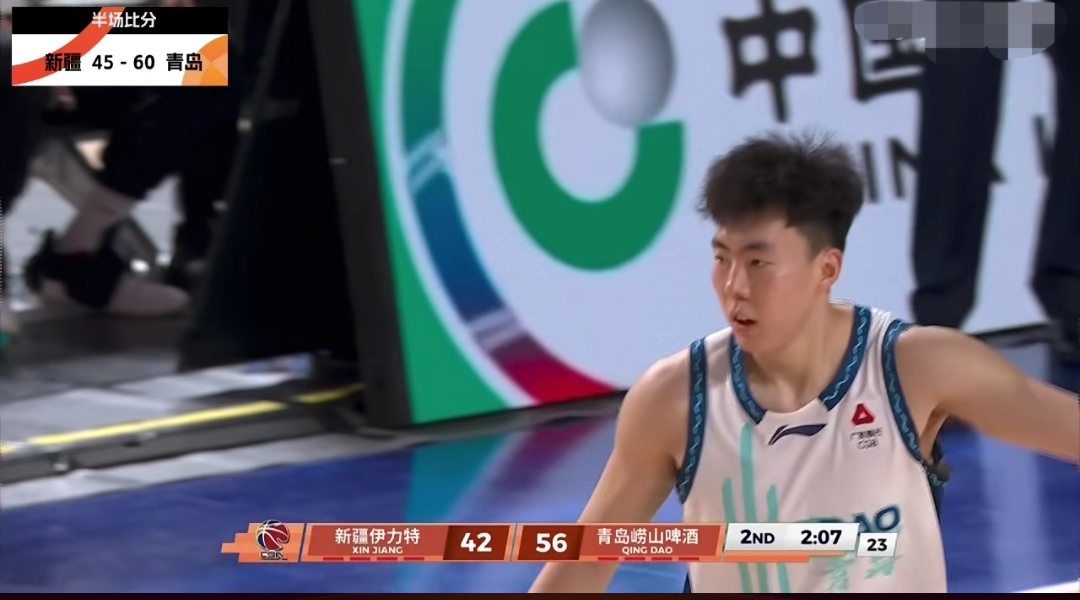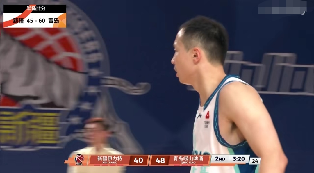 第二节,双方换上替补球员,新晋加盟青岛队的王奕博获得出场机会。