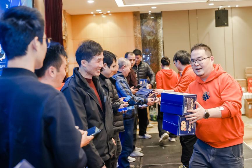 平台工作人员为司机师傅送上礼品。