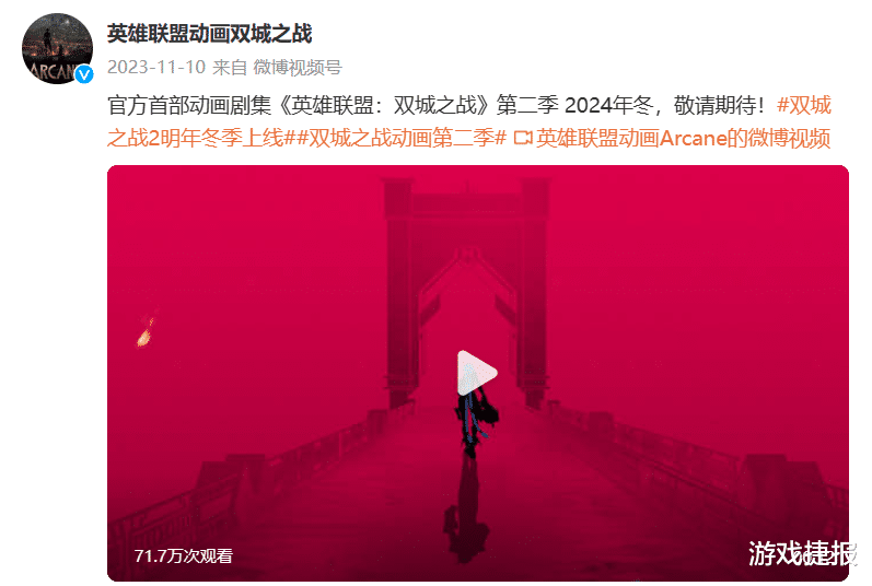 基于第一季的成功,《双城之战》第二季的动态也一直备受关注。2023年11月,官方发布了《双城之战》第二季的前瞻视频,并官宣将于2024年冬季在全球播出。