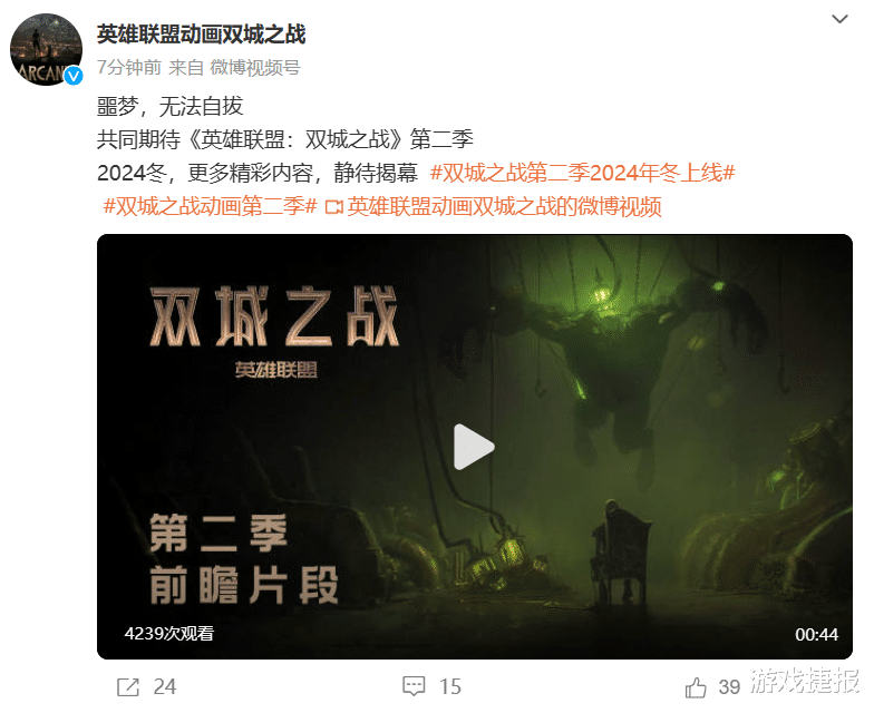 目前,第二季的前瞻片段可在《英雄联盟:双城之战》的官方微博、抖音及快手账号上观看(账号名:英雄联盟动画双城之战)。