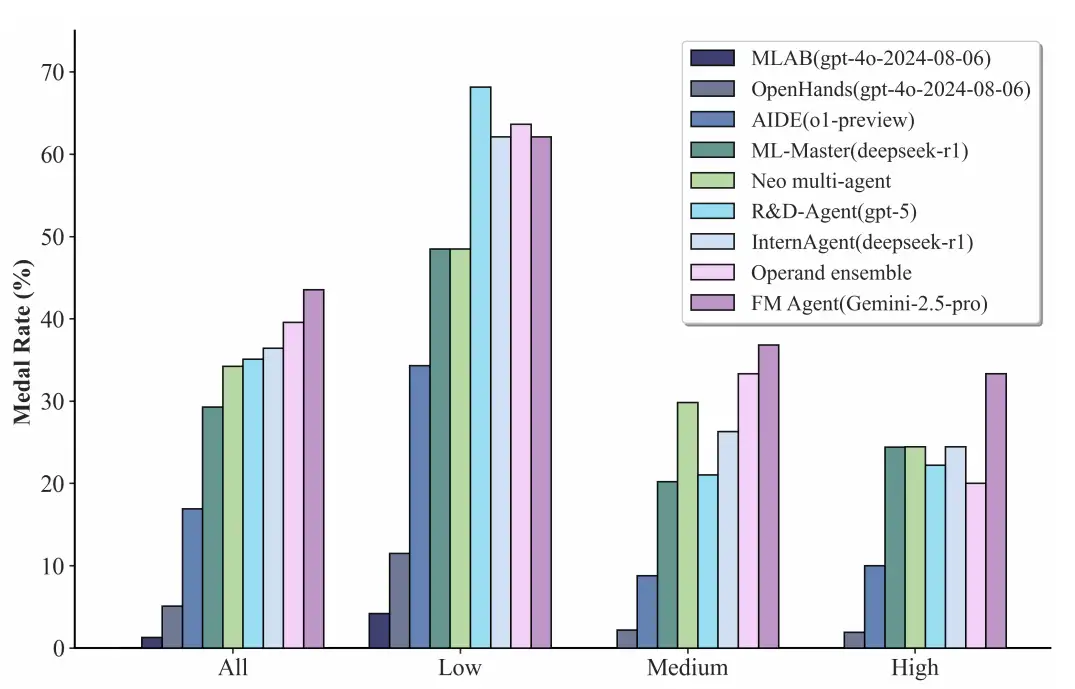 MLE-bench是衡量AI科研演化能力的核心基准,此次突破标志中国在自主智能体领域达到国际领先水平。随着AI从“执行任务”向“自主探索”升级,这类技术将为具身智能、科学研究等领域提供新动能。