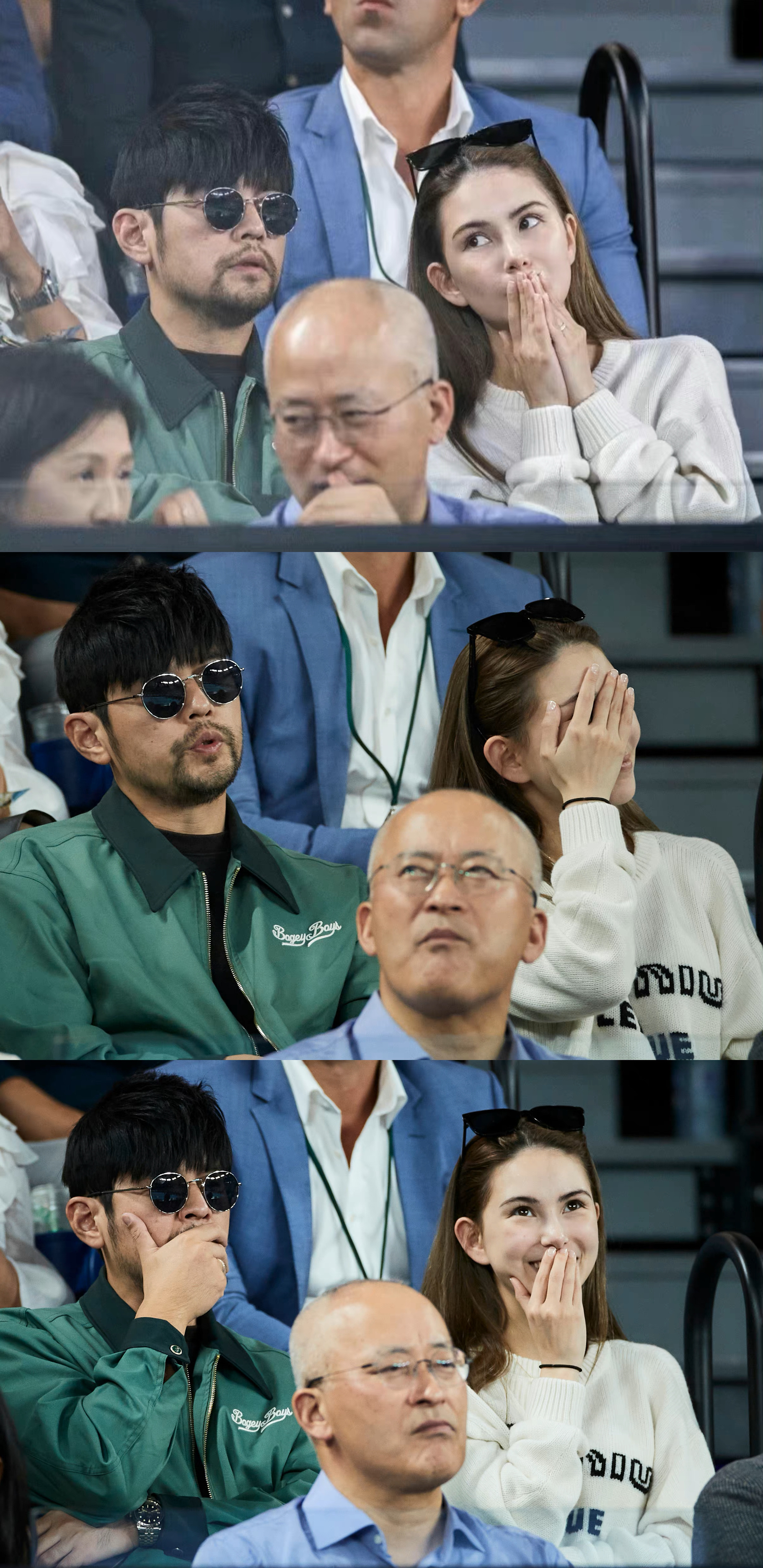周杰伦昆凌观看澳网男单决赛生图,昆凌好美呀!