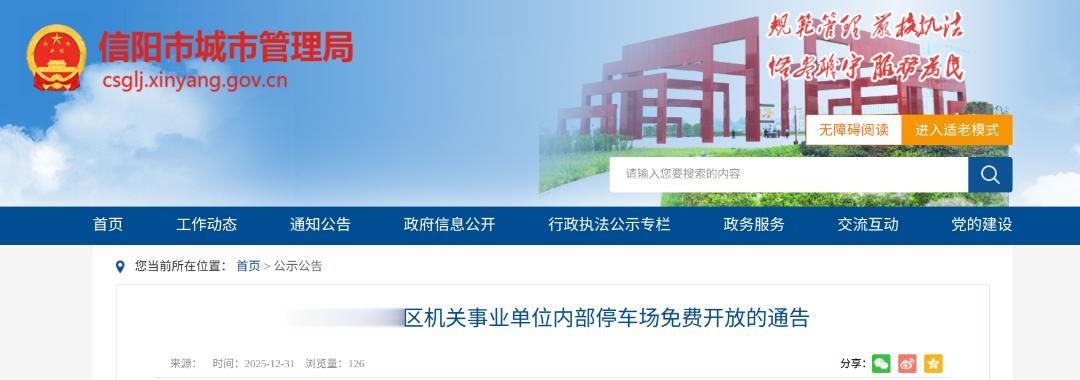 信阳市已实行中心城区机关事业单位内部停车场常态化免费开放,春节期间也适用此政策。