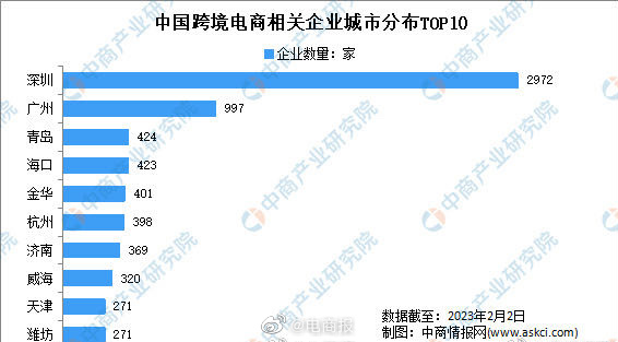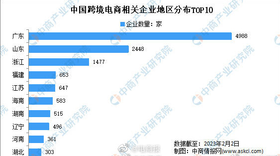 我国现存跨境电商相关企业1.47万家,2022年新增4061家,广东以4988家跨境电商相关企业排名第一!(图源:中商情报网)