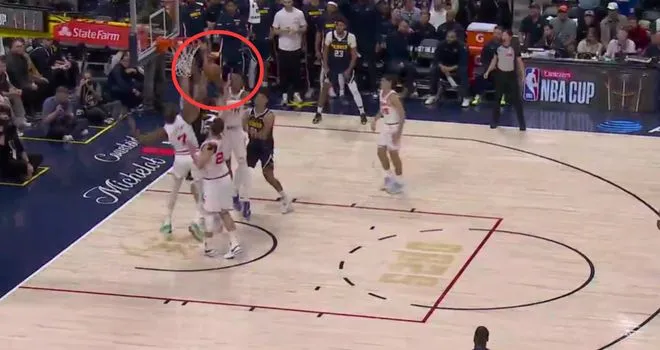 加时赛还剩1分08秒,掘金队侧翼球员小哈达威在争抢球权时对申京犯规,裁判当时未作吹罚;