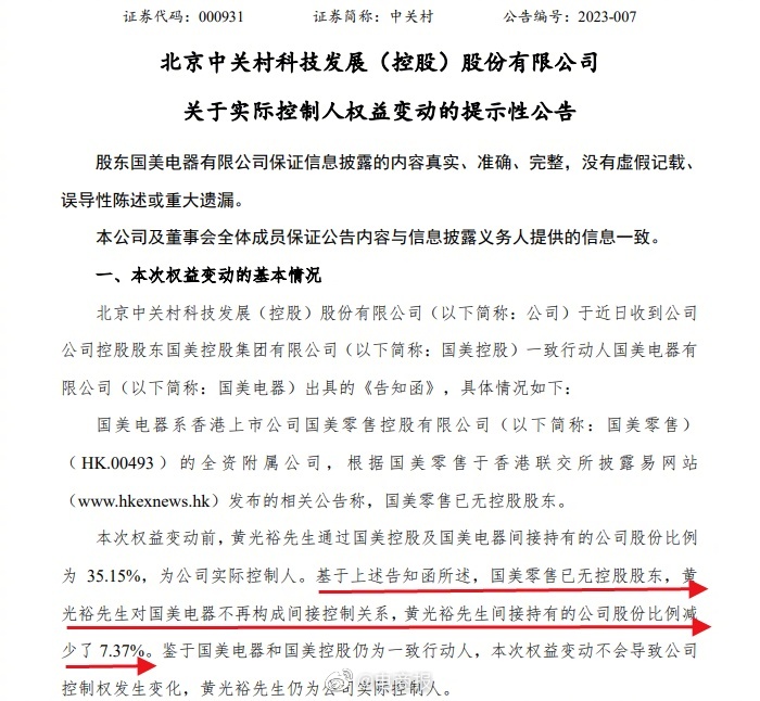 黄光裕失去国美零售控股席位?公司回应:大股东对国美未来发展充满信心,持股比例有望提升,并恢复至 20%-30% 之间!