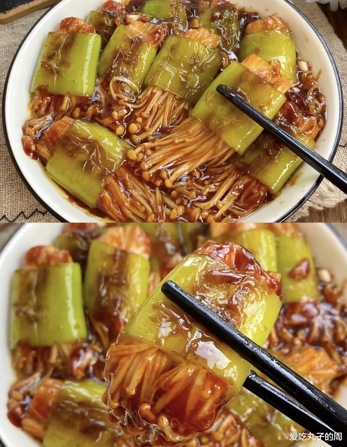 如果喜欢更丰富的口感,可以在青椒和金针菇之间添加一些切片的蘑菇或其他蔬菜。这道菜也适合用来烤制,放在烤箱里以200摄氏度左右烤大约15分钟,直到青椒表皮略显皱缩。