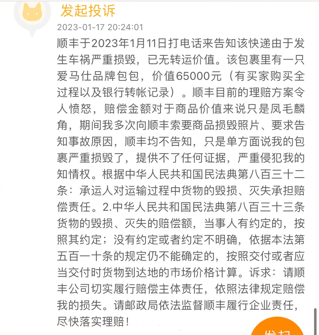 买几万块的包,就没买保险?这事顺丰全额退呗,还有啥说的?