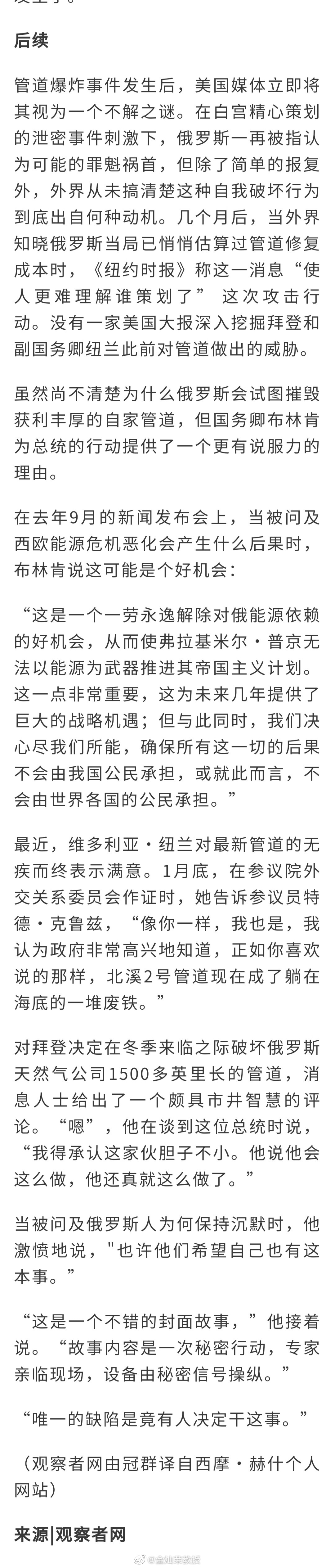 西摩•赫什:美国是怎样炸毁北溪天然气管道的?(全文)这老兄把老拜登扒的连裤衩都不剩了。