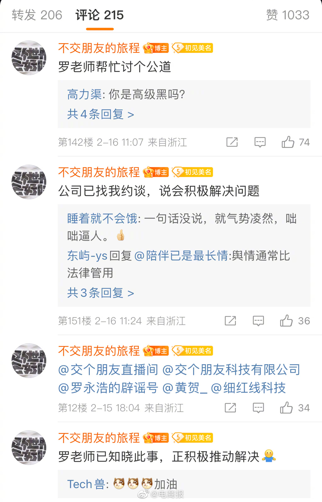 爆料人称,目前罗永浩已知晓,正积极解决中。