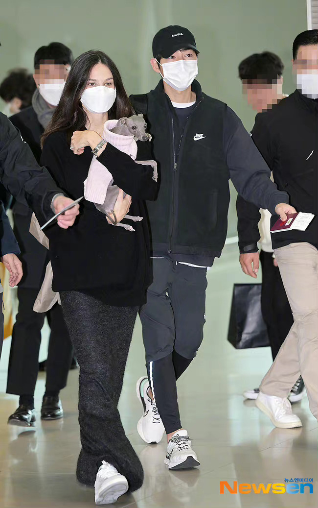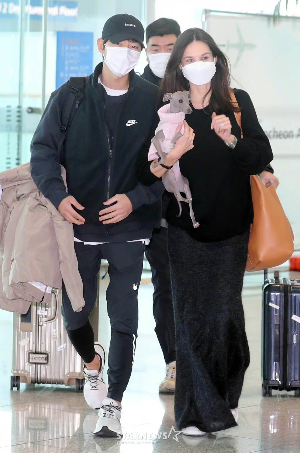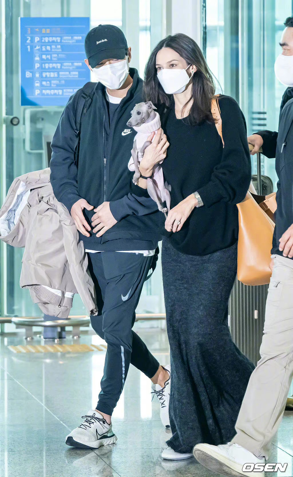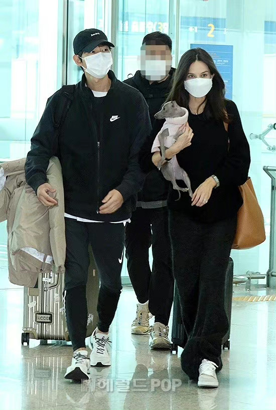 宋仲基携妻子现身机场,他老婆还蛮有气质的!