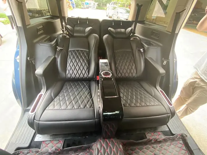 三排的进出从门侧边可以出入,因为升级后的六座要比原车的六座座椅要宽,这也是最大程度的给舒适度做担保,所以牺牲了中排过道,但三排还是可以使用的,把座椅移动到最前面后门侧边出入虽然没有原来方便但用起来还是可以接受的。