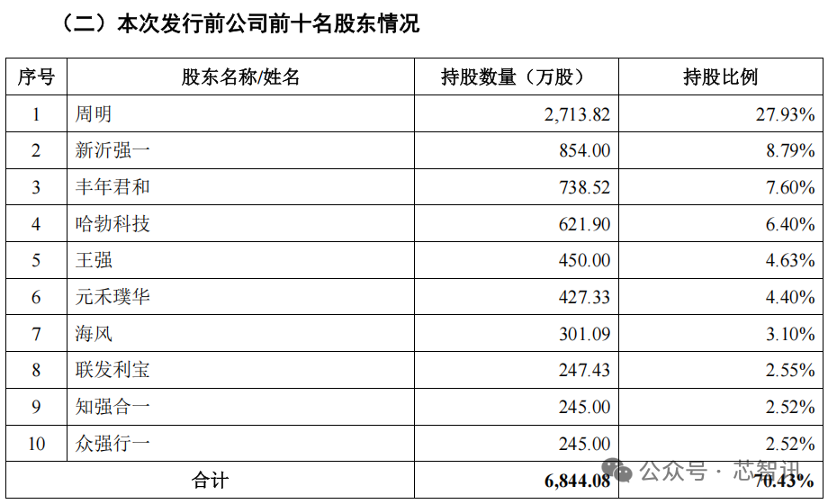 八、董事长周明合计控制50.05%股份,华为哈勃是第四大股东
