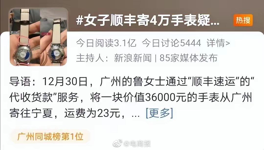 近4万元高档手表被调包?顺丰回应:系收货人调包,目前已被刑拘。快递小哥:差点背锅