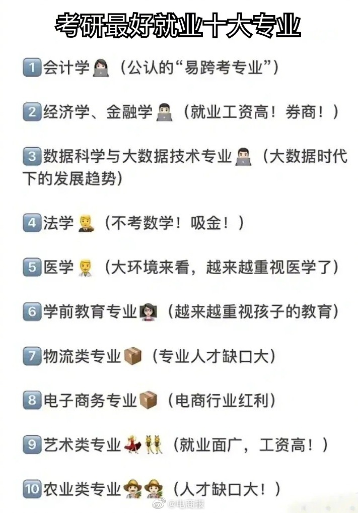 ChatGPT给出的考研有助就业的二十大专业,与公认的相近,计算机、大数据、物流管理、电商等上榜。你认同吗?