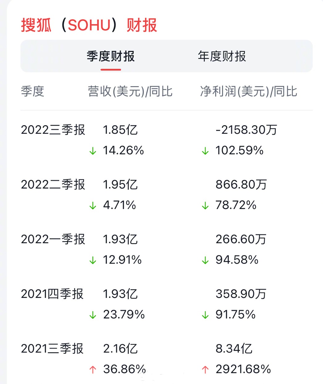 搜狐发布财报,第四季度营收1.6亿美元,同比下降17%。2022年总营收7.34亿美元,净利润200万美元。