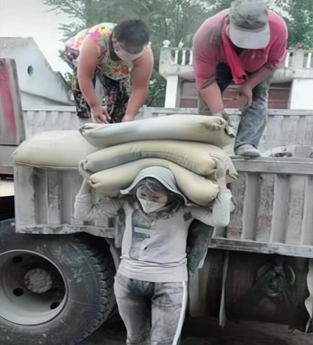 她是个典型的农村妇女,没有学历,没有文化,无奈之下她只能选择来到工地,尝试背水泥这份工作。