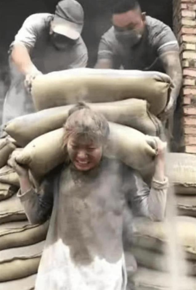 她却毫不在意,默默地扛起一袋又一袋沉重的水泥,步履蹒跚却坚定地走向前方,卸下水泥后,她抹了一把脸上的汗水和灰尘,对着镜头露出一个灿烂的笑容。