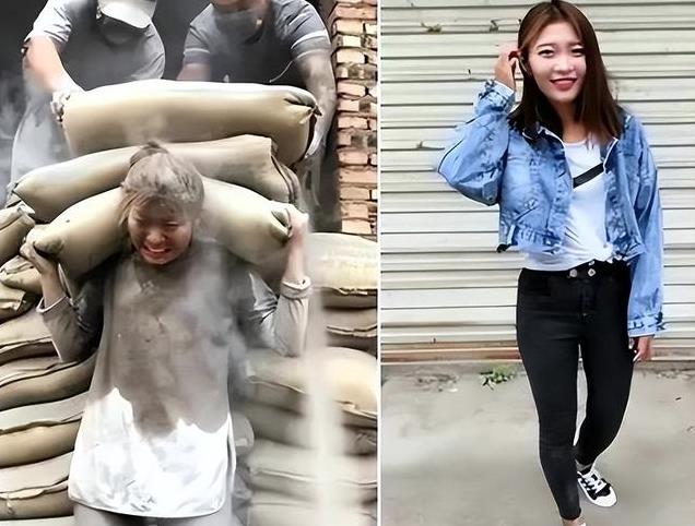 2017年,在短视频平台上,一位扛水泥女孩悄然走红,视频中她身穿沾满灰尘的灰色长袖T恤和紧身牛仔裤,汗水浸湿了凌乱的头发,顺着面颊滑落。