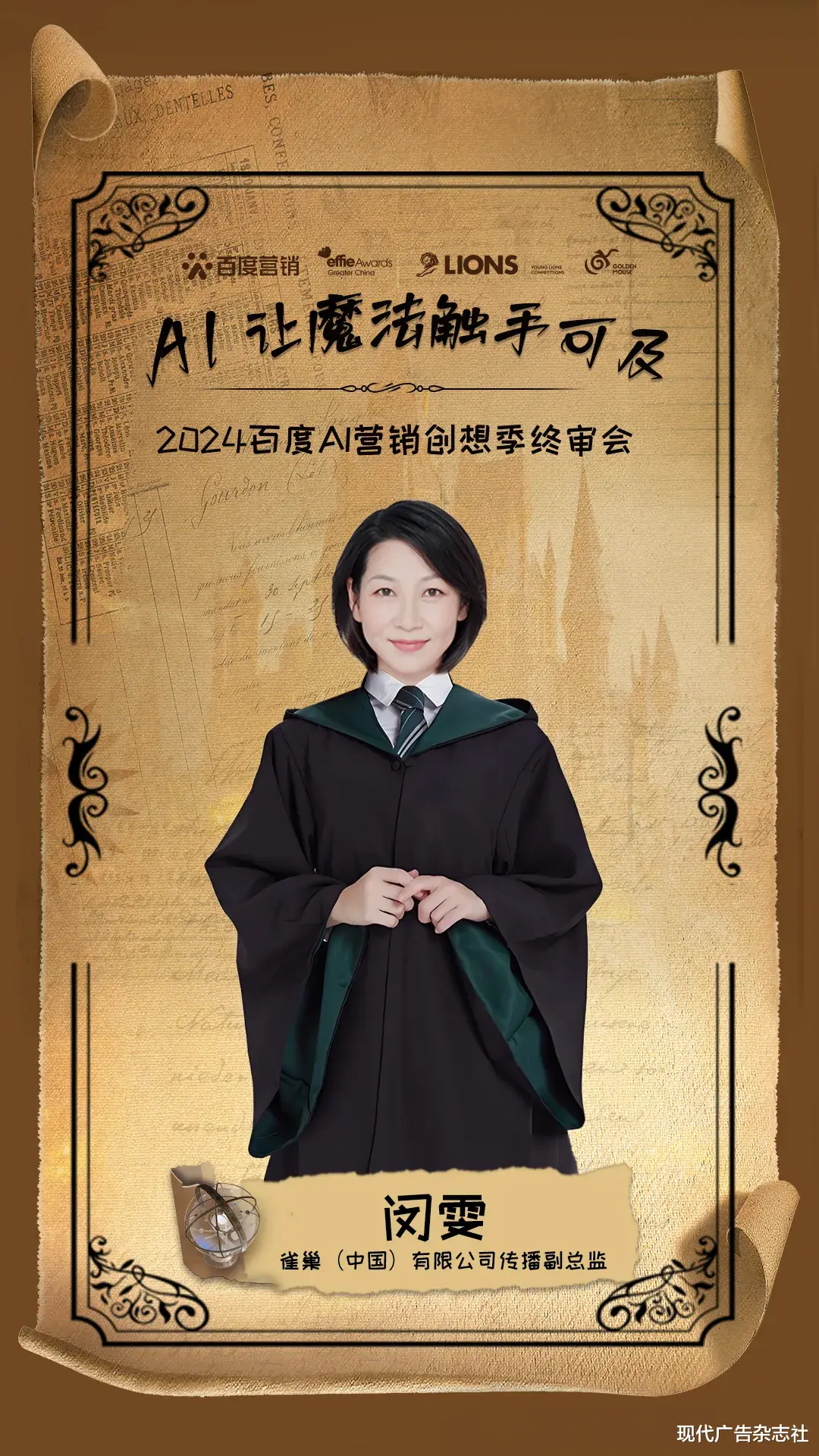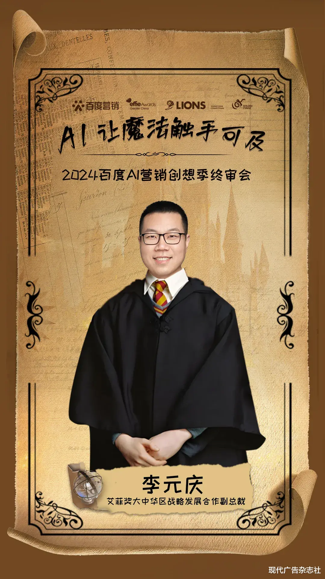 作为百度的年度商业营销赛事,“百度AI营销创想季”已连续举办7届,并联手王老吉、沃尔沃、杰士邦、smart等品牌,打造了众多具有行业标杆意义的AI商业应用案例,在行业权威奖项中屡次斩获大奖。12月17日,2024百度AI营销创想季落下帷幕。汇源副总裁李生延、雀巢(中国)有限公司传播副总监闵雯、伊利集团AI营销负责人杨晓萌、卡夫亨氏市场总监俞腾飞、《现代广告》杂志执行主编戴莉娟、金鼠标大赛联合创办人方立军、奥美北京广告董事总经理郭元秋、艾菲奖大中华区战略发展合作副总裁李元庆、TOPic & Loong创始人兼首席创意官龙杰琦、《哈佛商业评论》中文版执行出品人齐馨、M360&MSAI创+平台创始人兼CEO 钱峻、北京天与空合伙人兼首席创意官任勇、知萌咨询机构创始人兼CEO 肖明超、杨不坏工作室创始人杨不坏等来自品牌企业、创意公司、媒体机构等领域的顶尖水平从业者,组成本年度赛事强大的评审阵容,本着公正、专业、严谨的原则,联合评审出年度标杆级AI技术商业应用案例,旨在为未来企业营销发掘实践范例和借鉴参考。