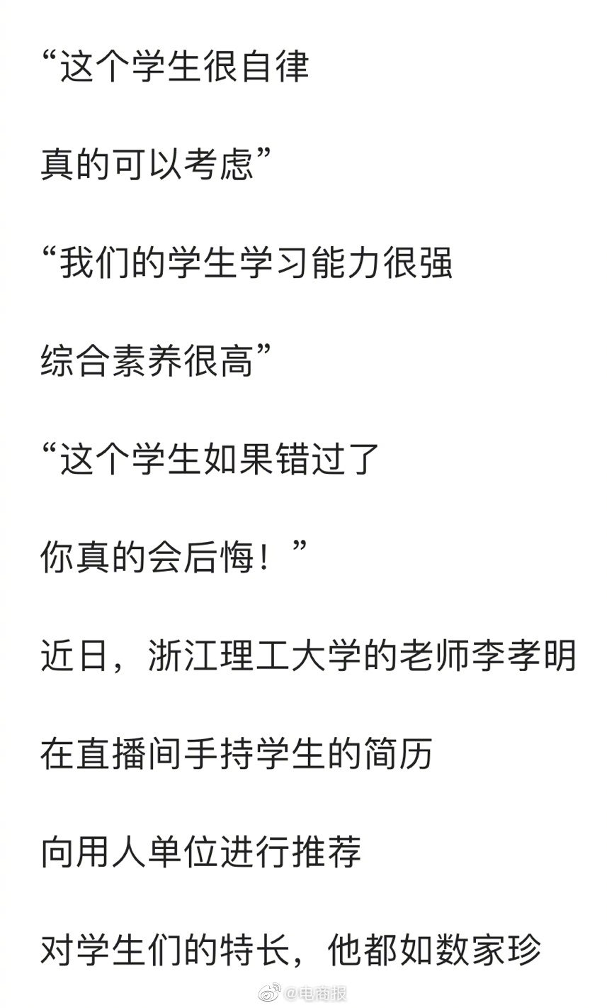 直播带货的新打开方式:直播带岗,目前该高校老师已帮三位学生取得面试资格,想帮更多同学找到高质量的工作。网友:这种直播间多来点。