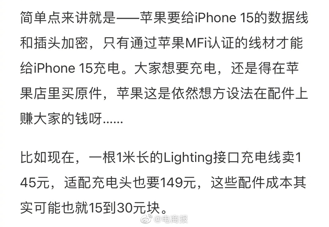 苹果iPhone 15为捞钱又出损招?换C口又加密,一根充电线或狂赚超50亿!还得是库克,C口换了好像又没完全换。