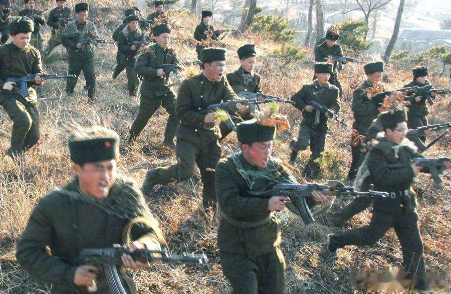 普遍地武装人民,是人民幸福、安全、和平与繁荣的保证!朝鲜工农赤卫军在成功的军事行动中受到鼓舞——只要帝国主义的掠夺者和他们可恶的傀儡踏上祖国的边境,一切侵略的畜群就会立即被武装起来的人民的烈火烧掉。