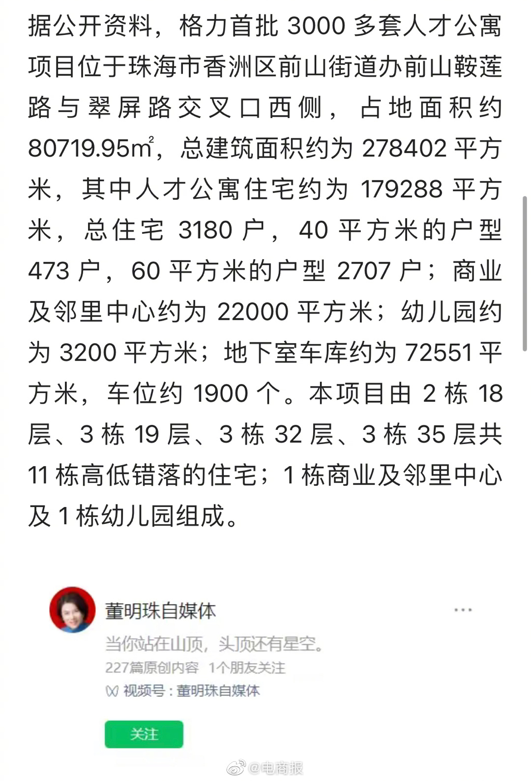 近日,董明珠接受采访称:有些自媒体为了赚钱不择手段,恶意言论不会动摇我们决心,格力员工一人一套房承诺不变!