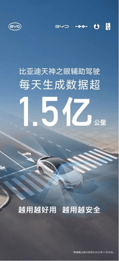 截至2025年11月底,比亚迪搭载“天神之眼”驾驶辅助系统的车型累计销量已突破230万辆,持续蝉联中国辅助驾驶车型销量及系统装车量榜首。这标志着比亚迪推动的“全民智驾”战略已取得显著成效。