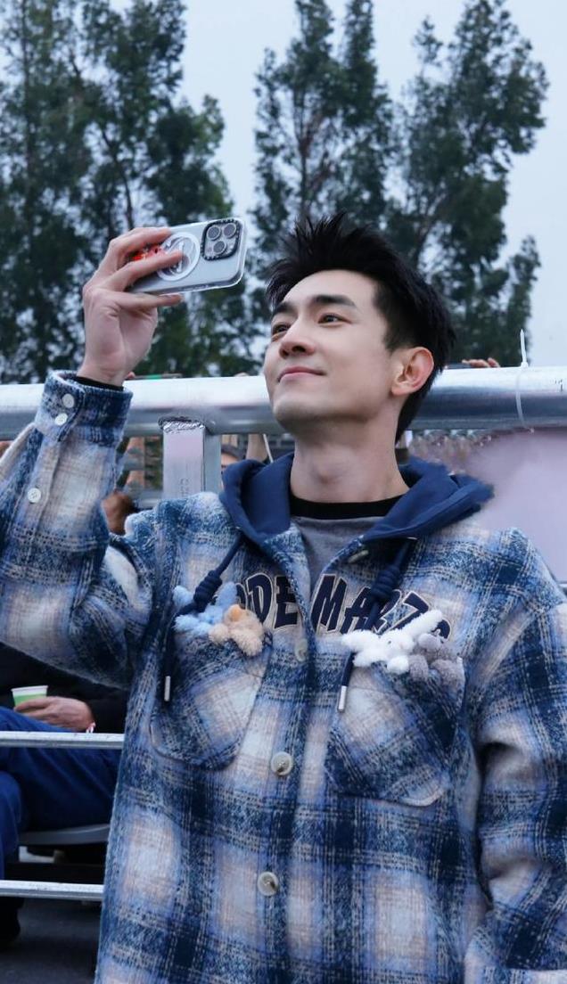 林更新穿的并不厚,内里穿着一件灰色薄衫,外面只套了一件带帽子的呢子衣,昨天泉州最低温度只有11度,他只穿了这些真的不冷吗?