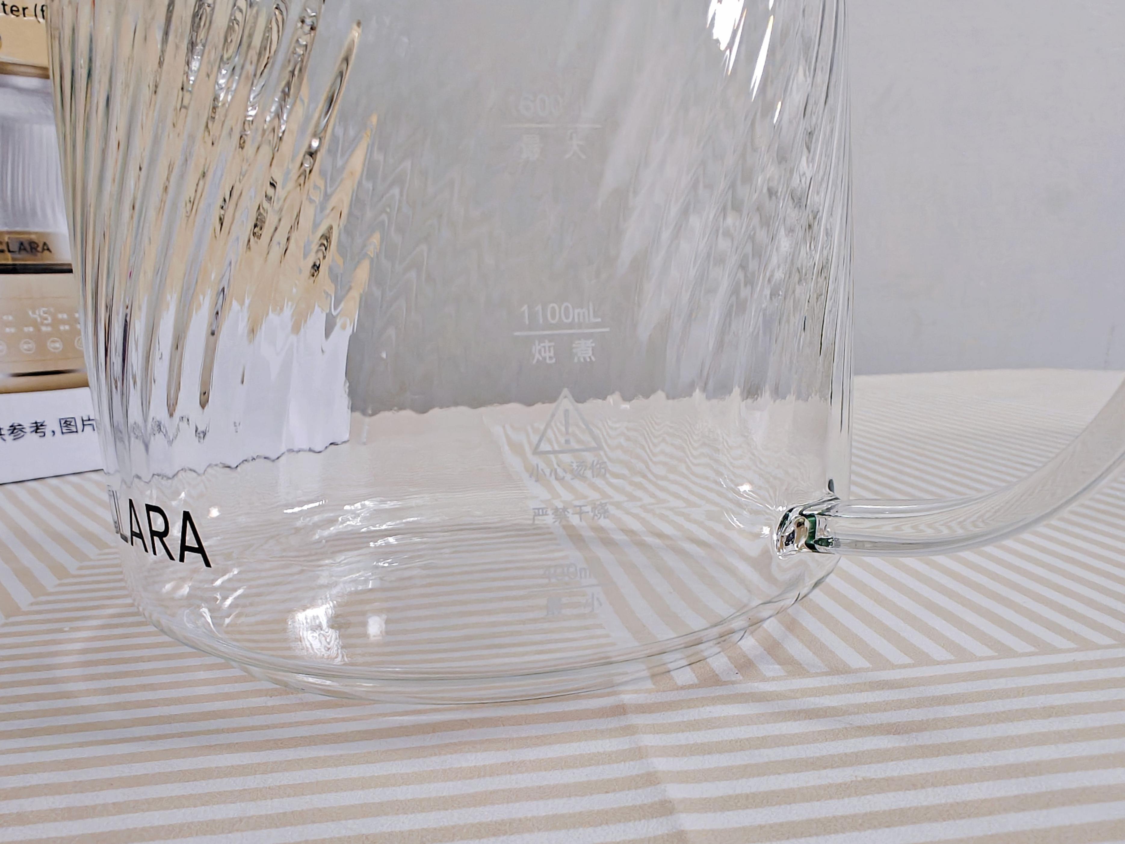 第一次拿到clara养生壶时,就被它的颜值惊艳到了。3mm加厚高硼硅玻璃壶身通透得像艺术品,放在办公桌上瞬间提升格调。没有金属拼接和涂层的干扰,整个壶身干净利落,搭配简约的底座和触控面板,科技感十足。同事路过都会忍不住问一句:“这壶挺酷啊,哪买的?”