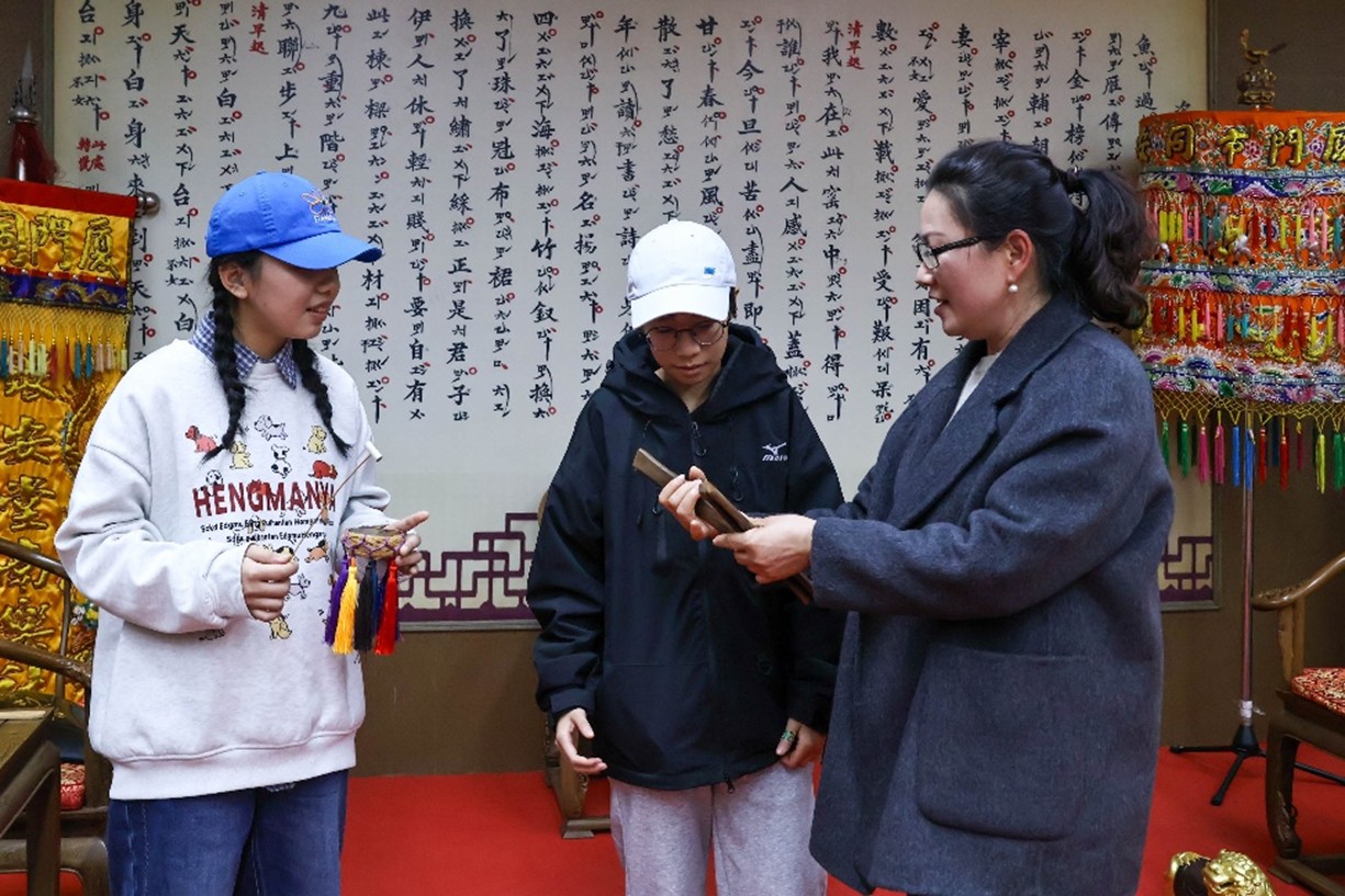 交流环节结束后,实践队成员们还在传承人的指导下亲手尝试演奏南音乐器。从敲击响盏到轮拂四宝,在真实的触摸中,近距离感知乡音的温度与质感。在校园传播和学习过程中,这种从“听到”到“触摸”、从“观赏”到“体验”的跨越,极大增强了年轻一代对闽南语文化的认同与兴趣。