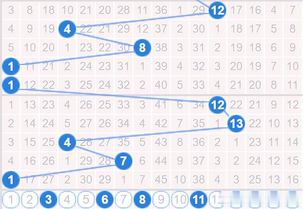 上期蓝球开出01,本期值得关注的蓝号有03、06、08及11。
