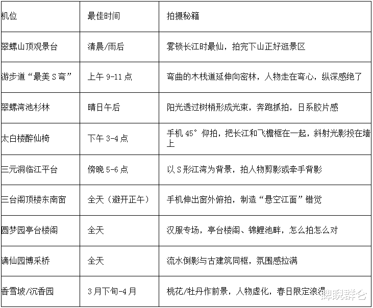 为了让你精准出片,我把全网口碑最硬的机位整理成表,照着拍,朋友圈会被追着问三年的那种:
