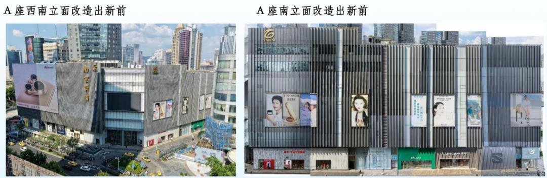 A座立面改造出新前,以格栅+封闭玻璃为主,色调偏深色。虽然玻璃元素不少,但没能充分发挥视觉观感和店铺展示的作用。