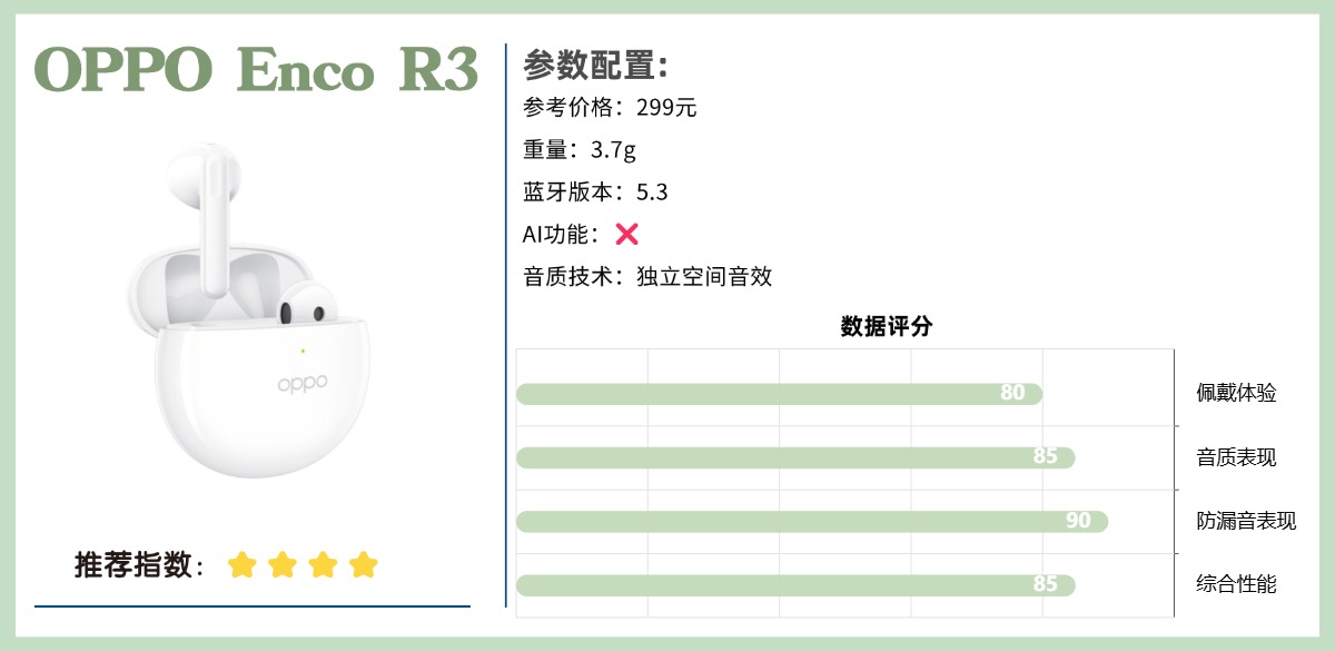 OPPO Enco R3单耳重量仅约4克,佩戴时几乎毫无负担感,即使长时间使用也不易对耳部造成压迫或不适。其充电盒结构紧凑、轻盈便携,可轻松放入口袋随身携带,十分适合日常通勤、商务出行或户外活动等多种场景。