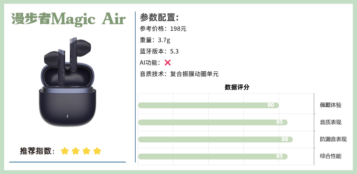 续航能力是其显著亮点之一,单次充电可支持长时间连续使用,综合续航最长可达30小时。无论是在通勤途中、办公间歇或旅行外出,都能提供持久可靠的电量支持,显著减少充电频率。此外,漫步者Comfo Fit II具备IPX5级别防水性能,可从容应对汗水或小雨等日常潮湿环境。它在实用功能与佩戴舒适度之间取得了良好平衡,可谓一款适配多场景的全能型耳机。