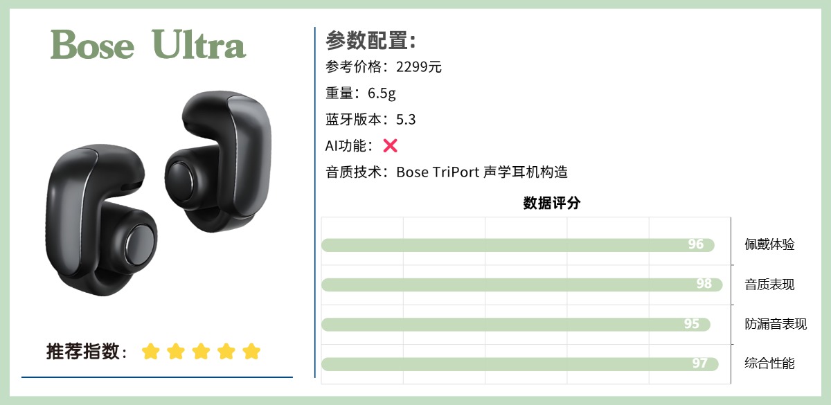 续航方面,单次充电可使用约7.5小时,搭配充电盒整体续航最长可达24小时。此外,产品具备IPX4级别防水能力,采用实体按键控制,并支持自适应音量调节,还可通过Bose SimpleSync技术与家庭音响设备联动播放。值得留意的是,其定位于高端市场,售价较高,性价比相对平实,更适合预算较为宽裕的用户考虑。