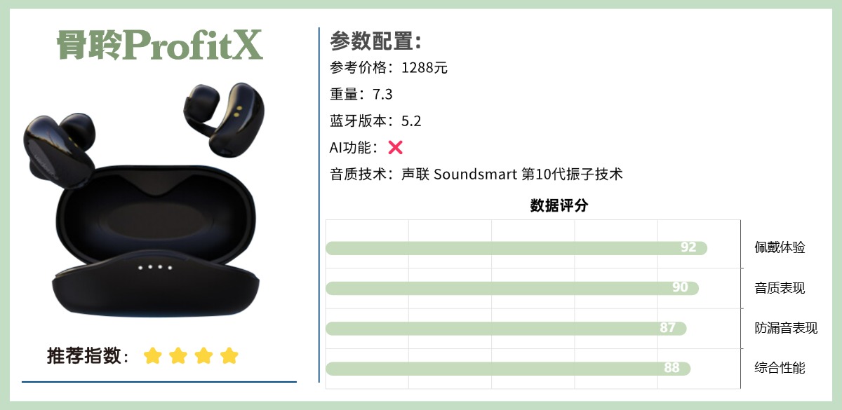 声音表现上,PROfitx搭载第十代声联Sound Smart骨传导振子,高灵敏度振动单元可覆盖4Hz至40kHz的全听觉频段。配置方面支持IP67级别防尘防水,无惧日常汗水和溅水;内置高通QCC3040芯片,在10米有效距离内保持连接稳定,声音传输清晰细腻。