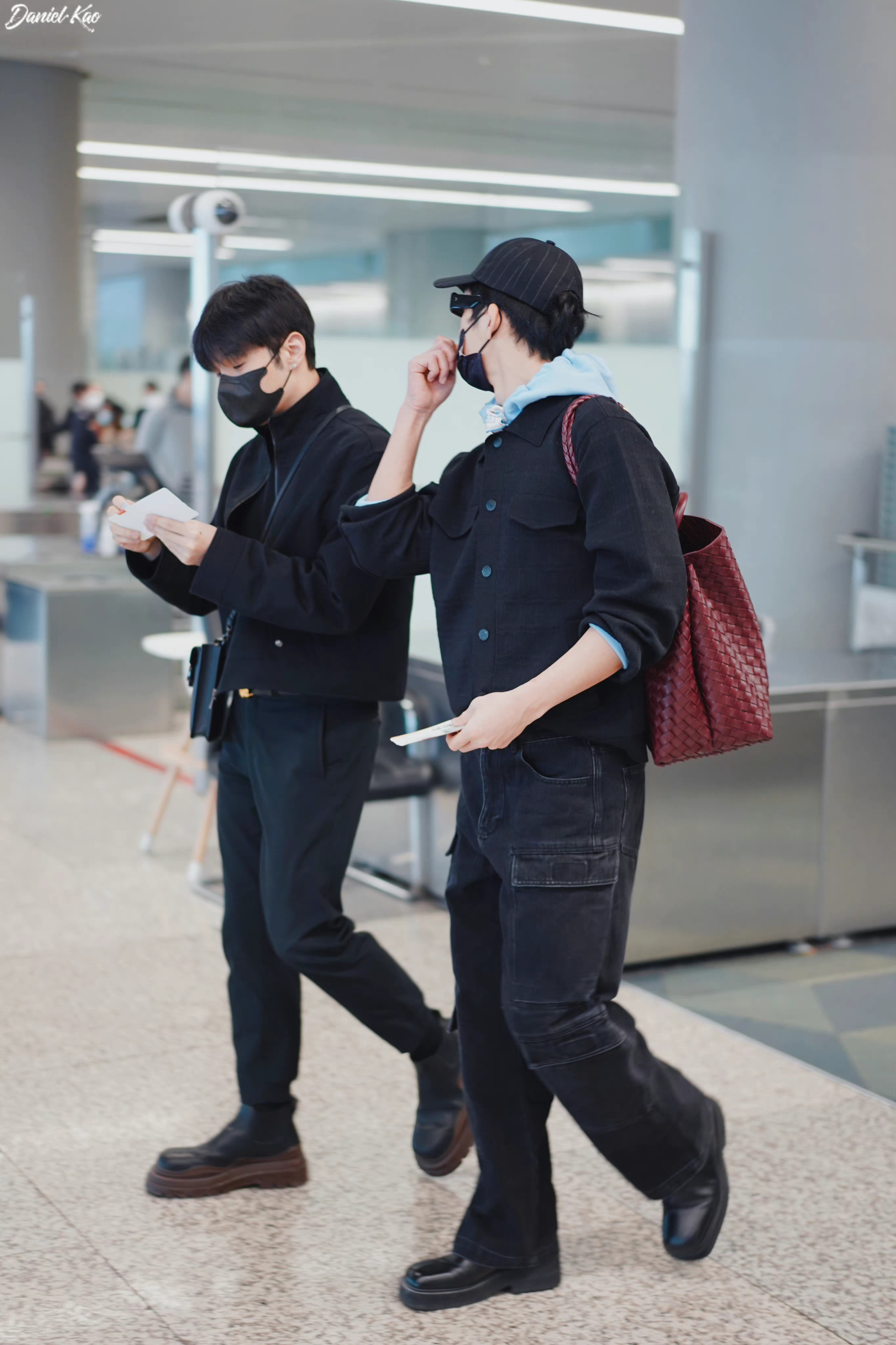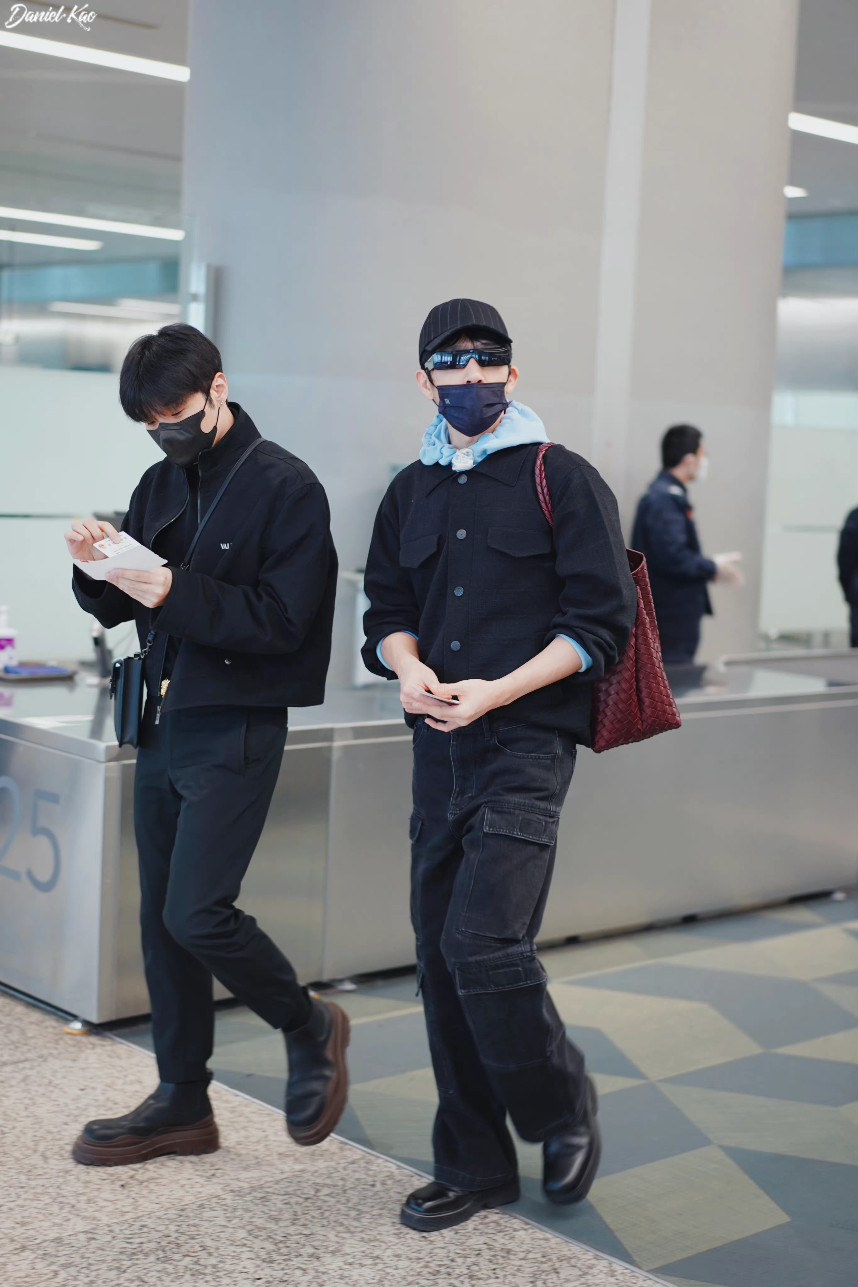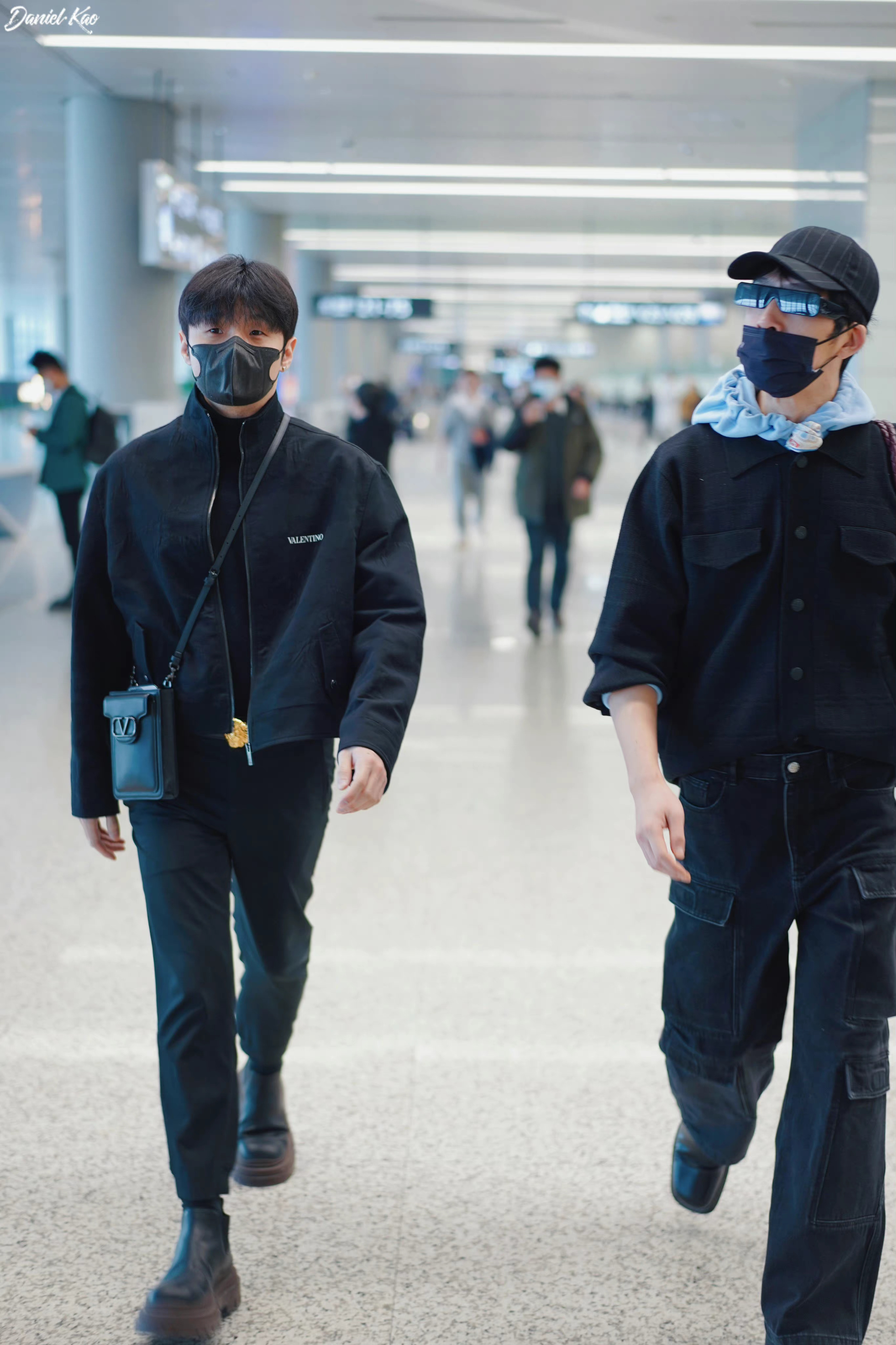 井柏然李荣浩机场同框,时髦的兄弟俩!