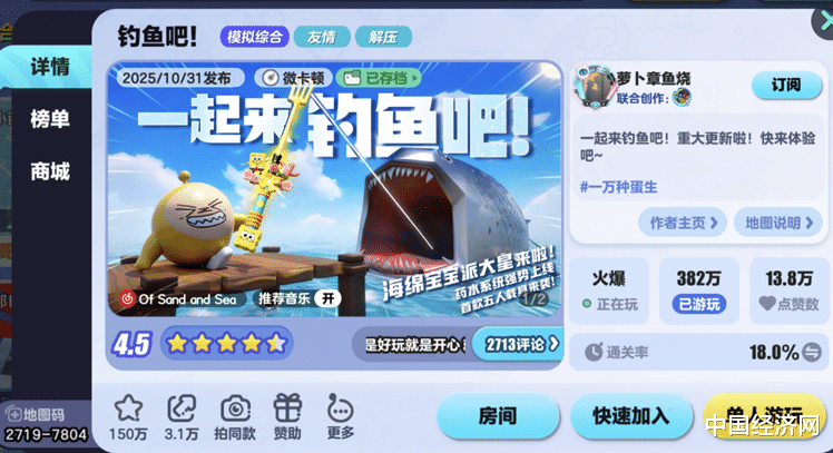 生态的完善推动创作者走向专业化。萝卜坦言,早期独自创作效率低下,因此在开发《钓鱼吧!》时与擅长程序的作者“豆油汉堡”合作,成立工作室,分工协作显著提升了效率与更新速度。