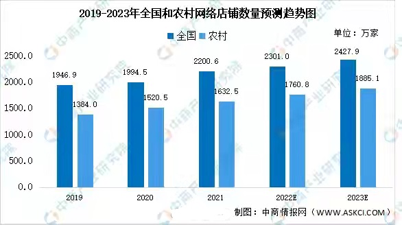 2022年全国农村网店达到1730.3万家,同比增长6.2%,其中直播电商有57