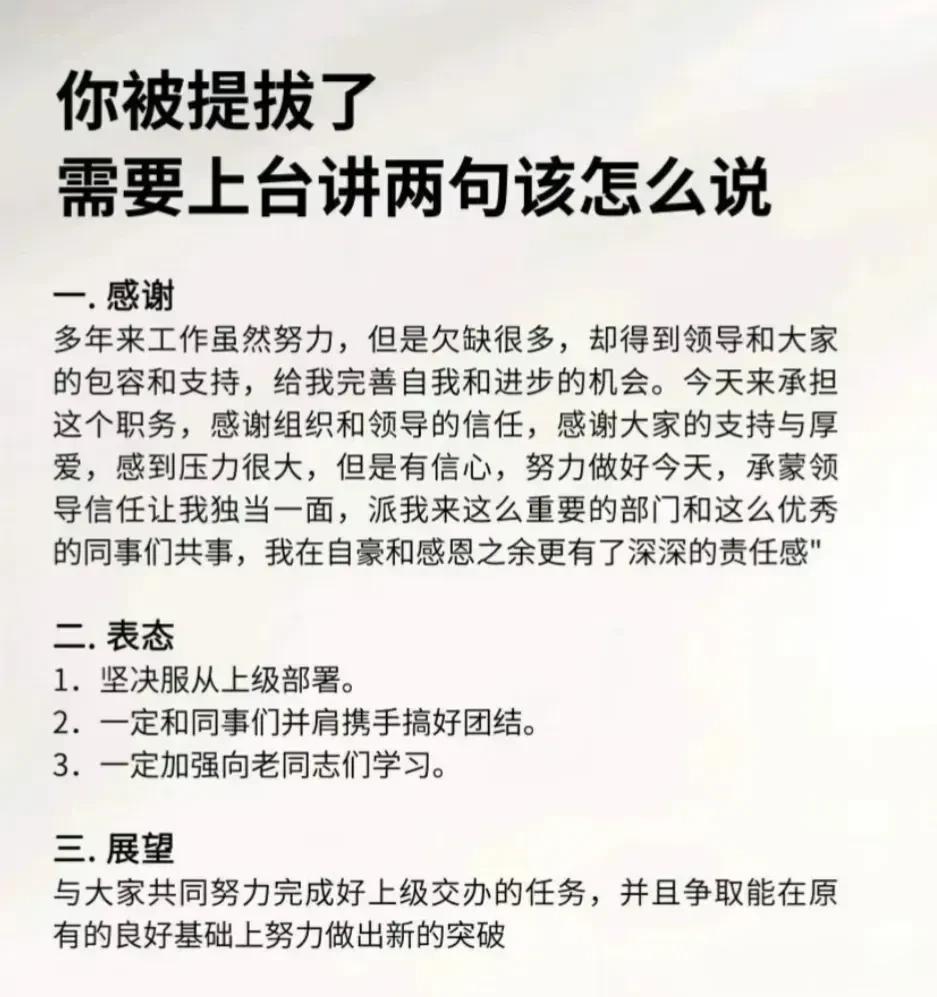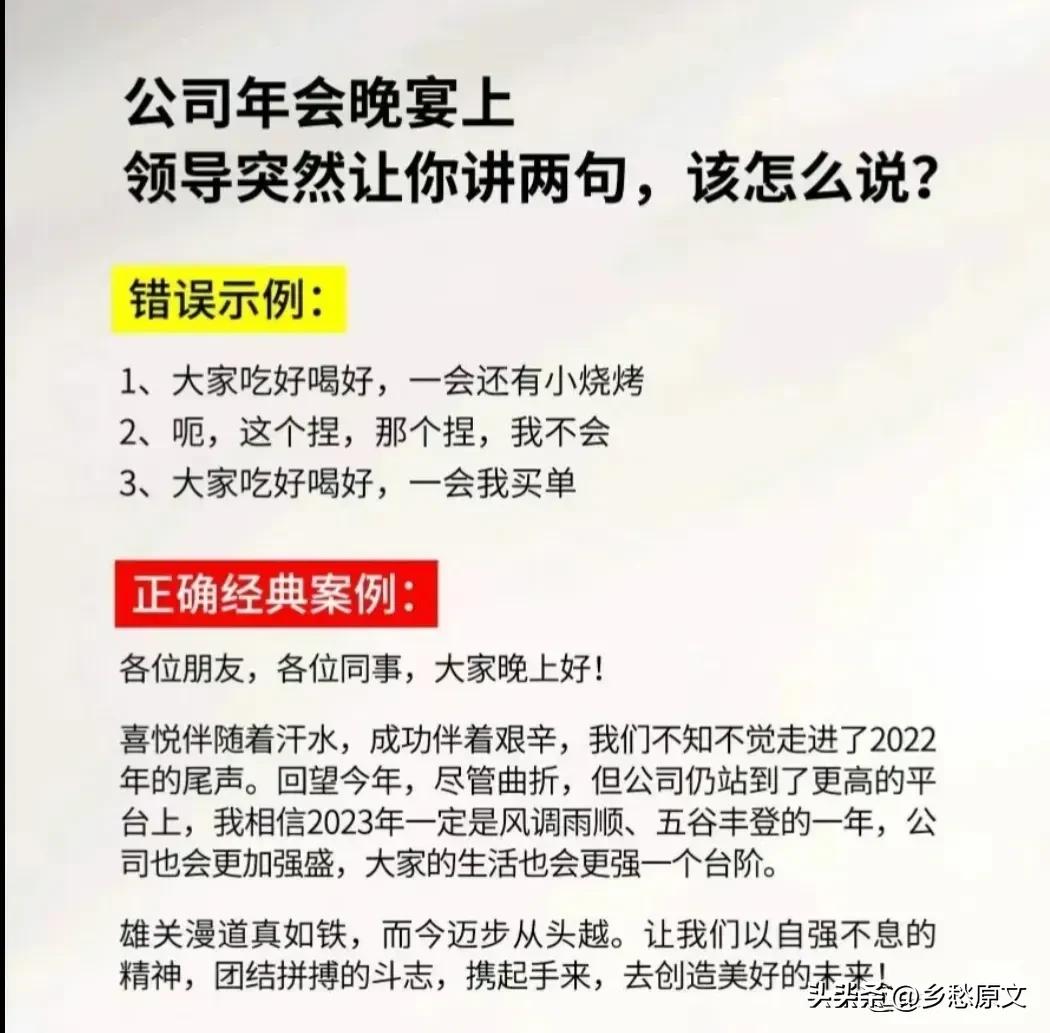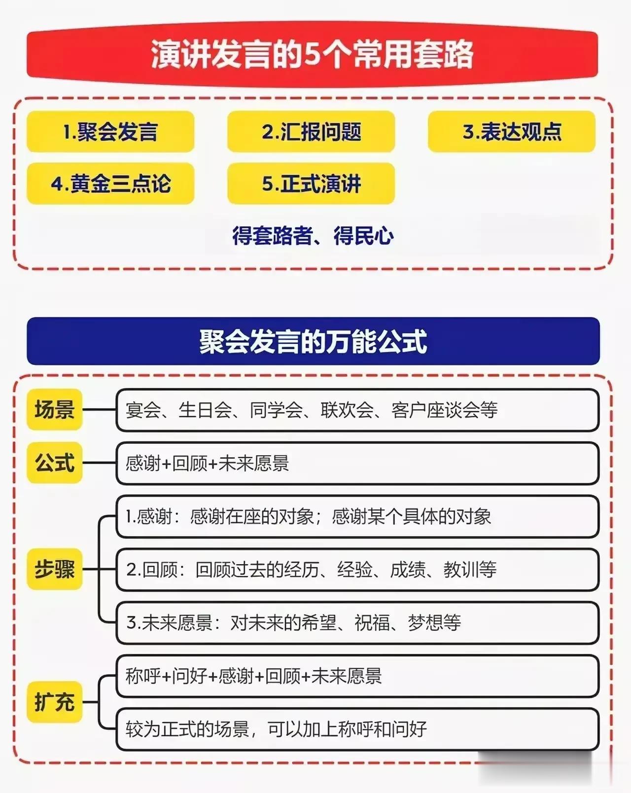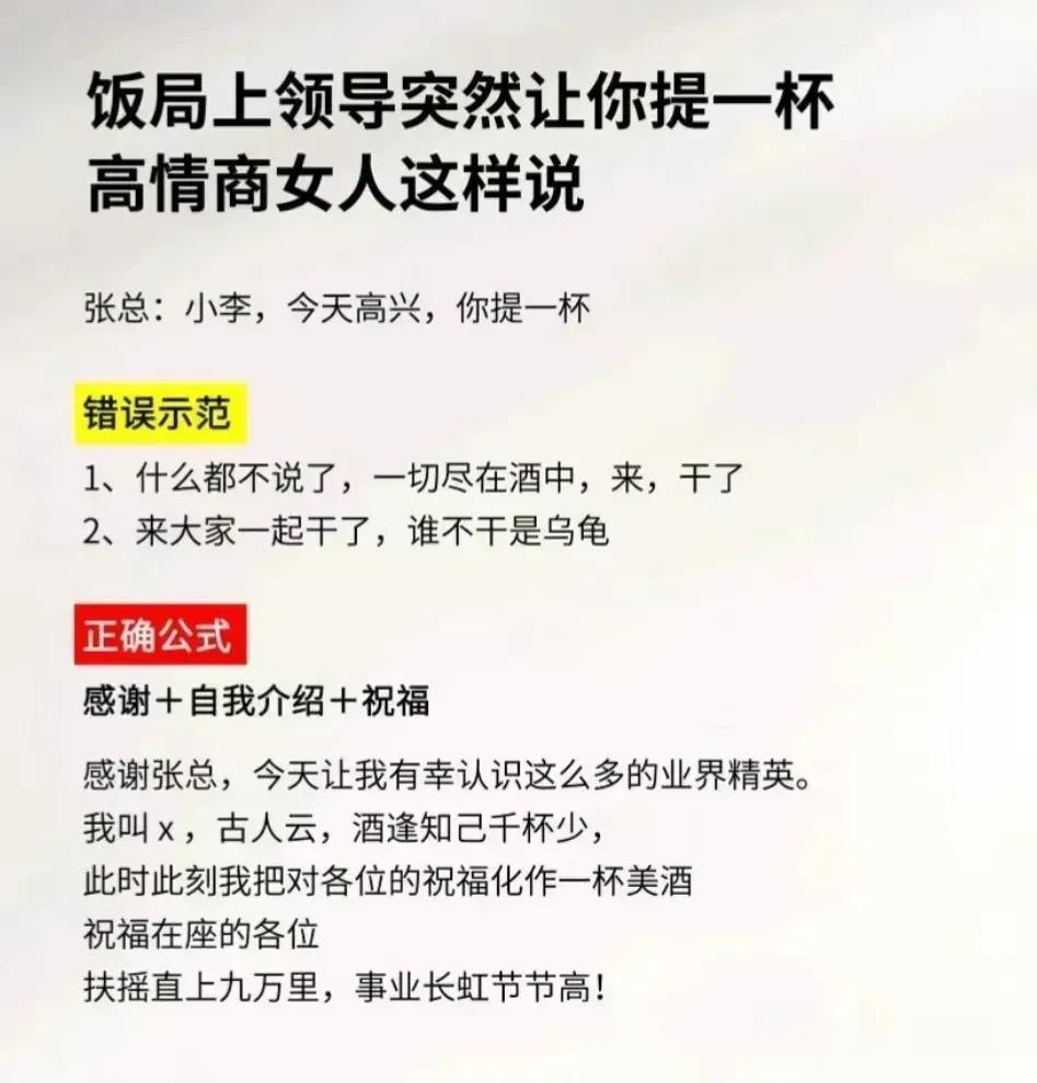天呐!做东请客吃饭,开场白怎么说?感激+回馈+祝福。领导突然让你上来讲话,如何才能赢得更多掌声?牢记万能公式+感恩+决心!人们都说干的好,不如说的好,会表达真的是一种职场重要的能力!不信你试试!