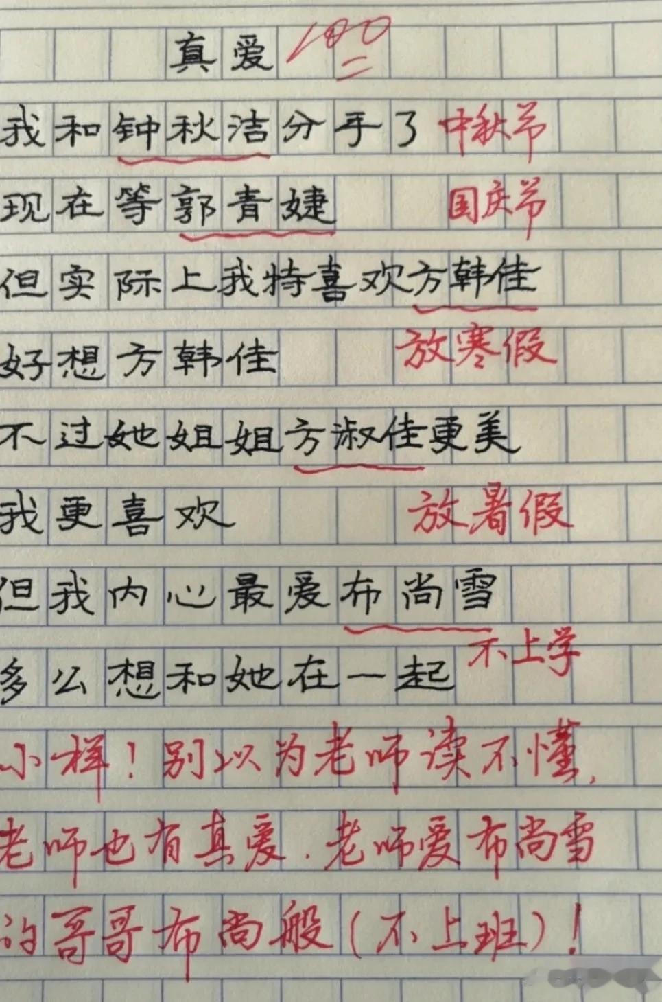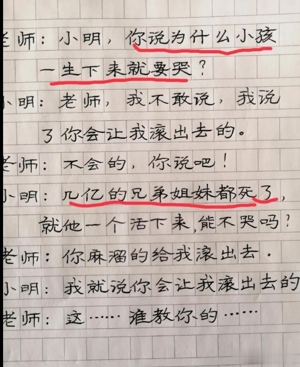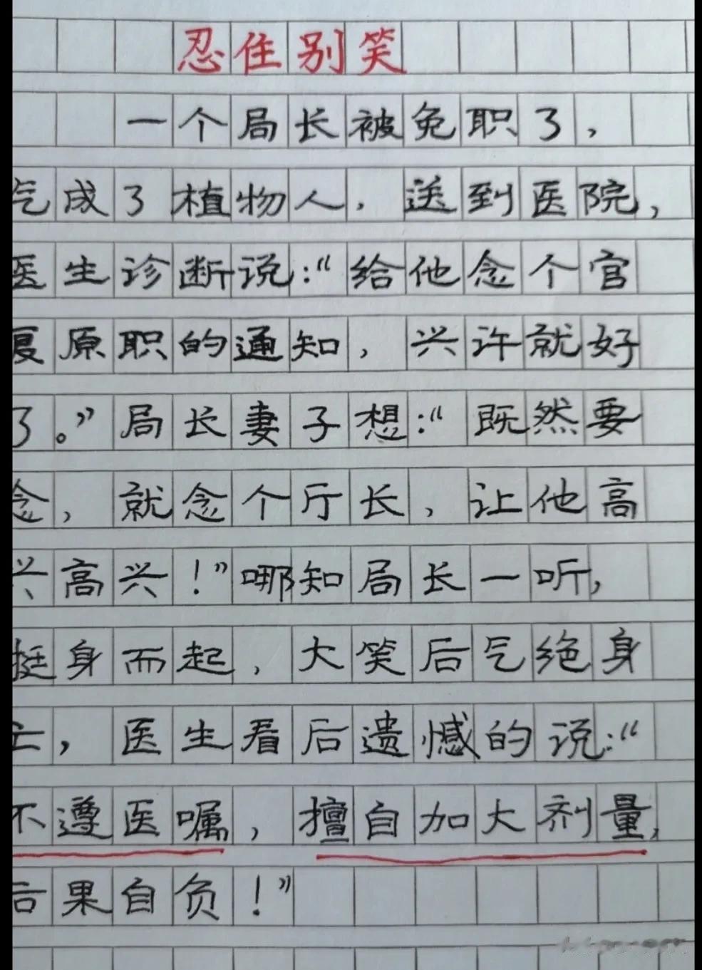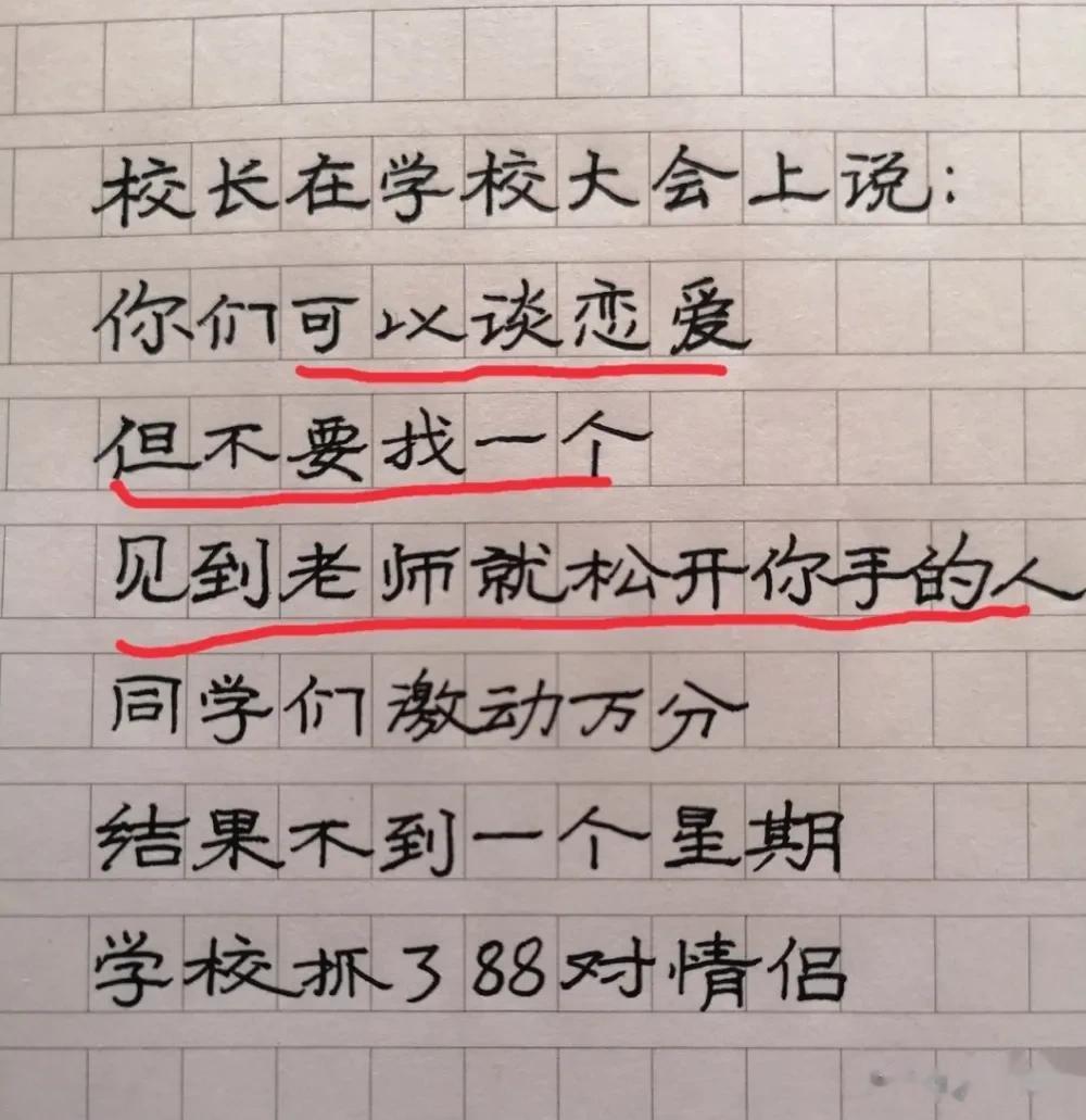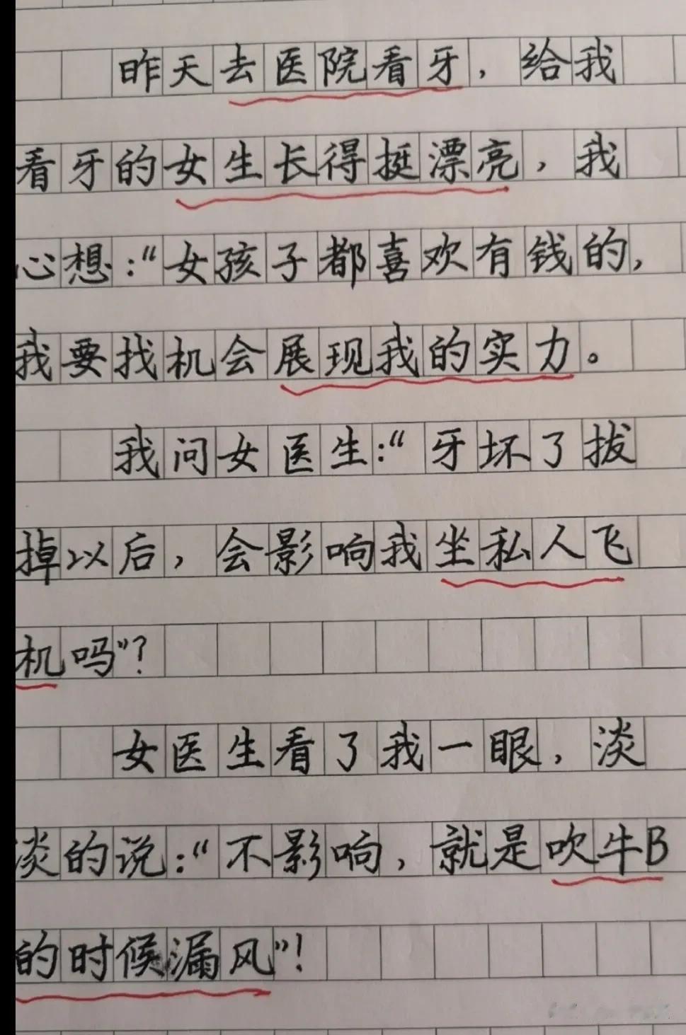 天呐!人才的写作!段子一:以记叙文的形式,叙述某人的一生《他的一生》你写的太牛了!聪明绝顶的人才,段子二,写一篇武侠题材的短篇小说,要求:三个门派以上,体现门派恩怨情仇,字数越短越好!答:秃驴,敢跟贫道抢师太!真是一个比一个有才!一篇比一篇精彩!